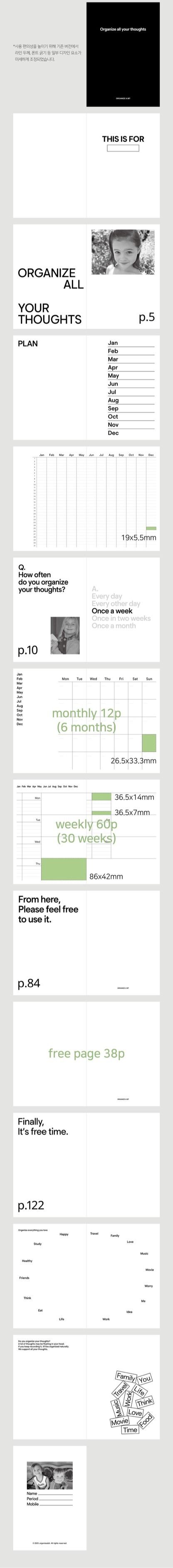 「organize diary」は 6ヶ月分の内容が書ける日付フリー手帳です。