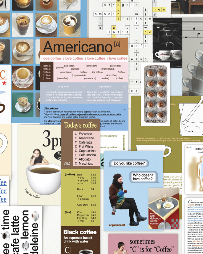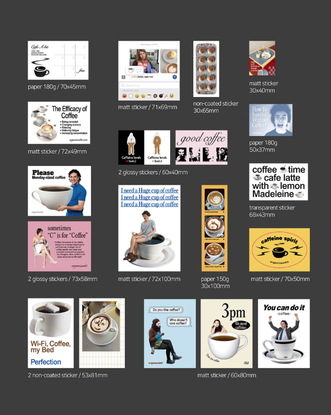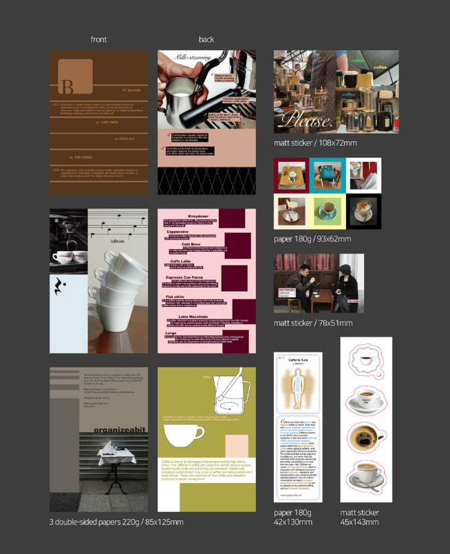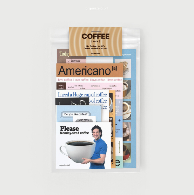 「coffee pack」は、コーヒーやカフェの世界観をテーマにしたステッカー&紙デコ素材のセット(デコレーションパック)です。