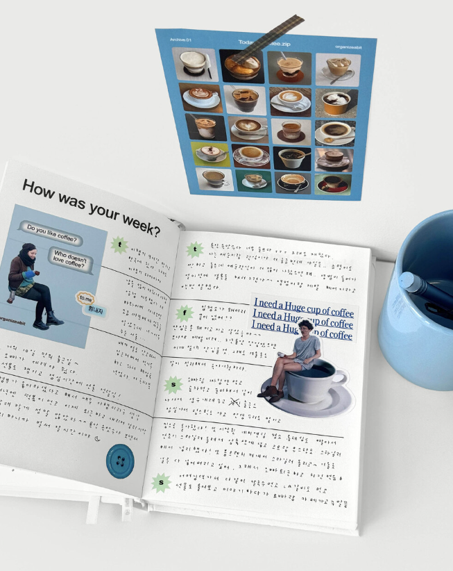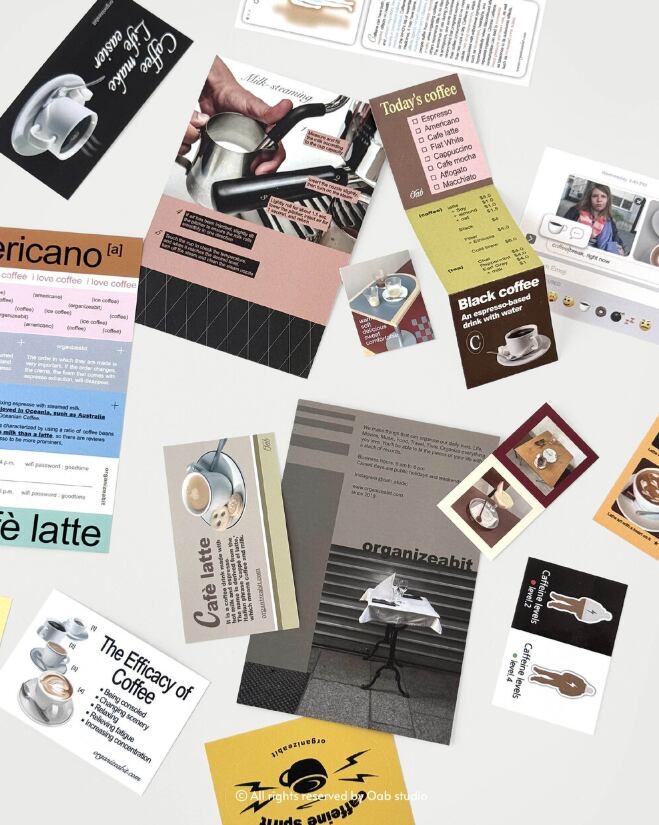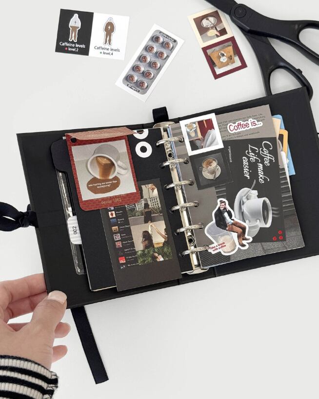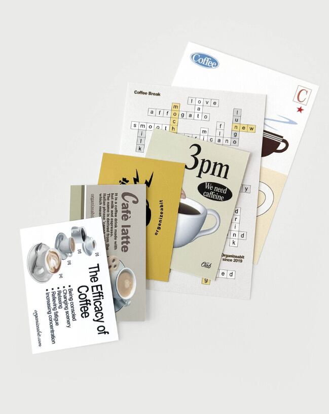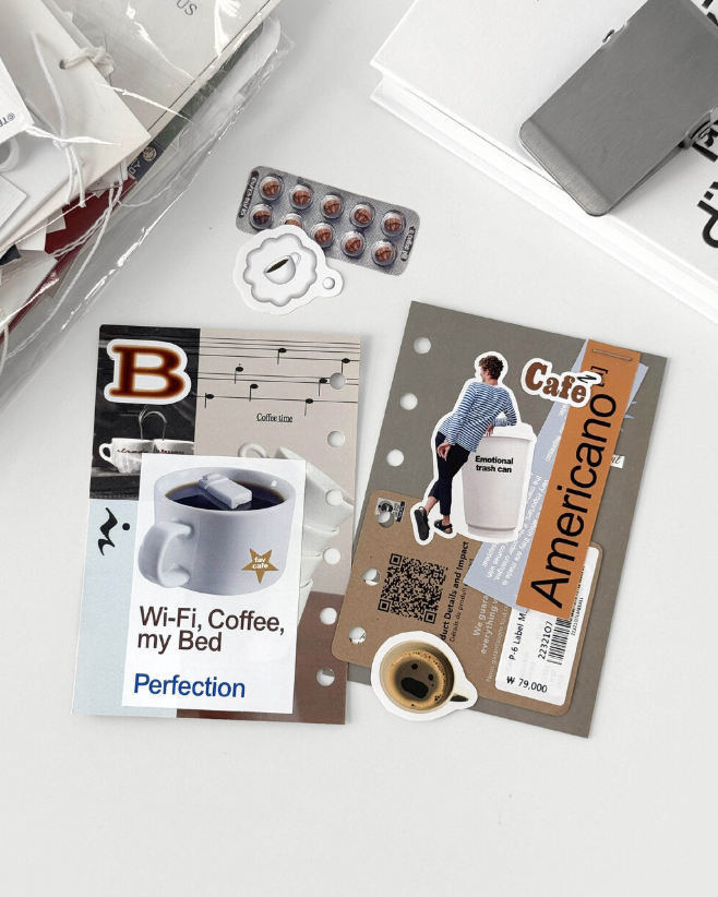 ステッカーに加えて、カードなどのデコ素材が入っているので、ノートや手帳、スクラップブックなどを、コーヒーとカフェの雰囲気でおしゃれに彩れます。