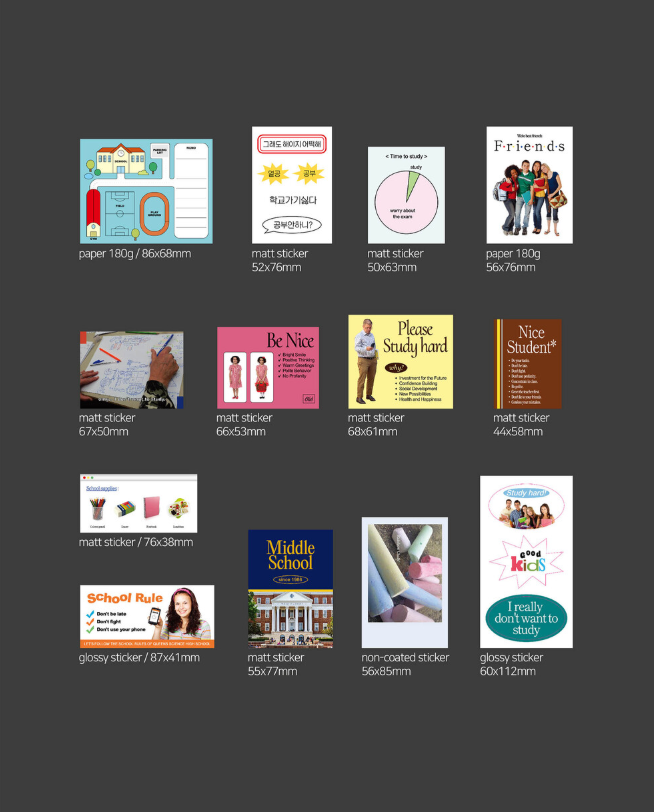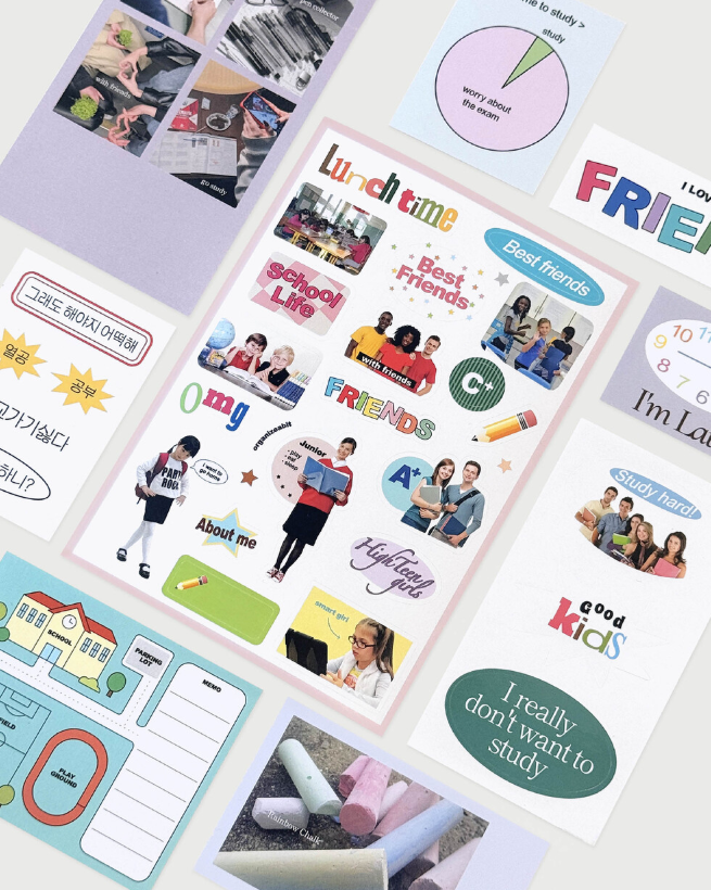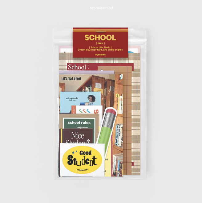 「school pack」は、学びや学校生活をテーマにしたステッカー&紙デコ素材のセット(デコレーションパック)です。