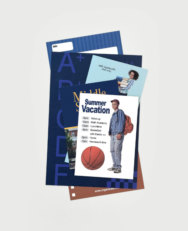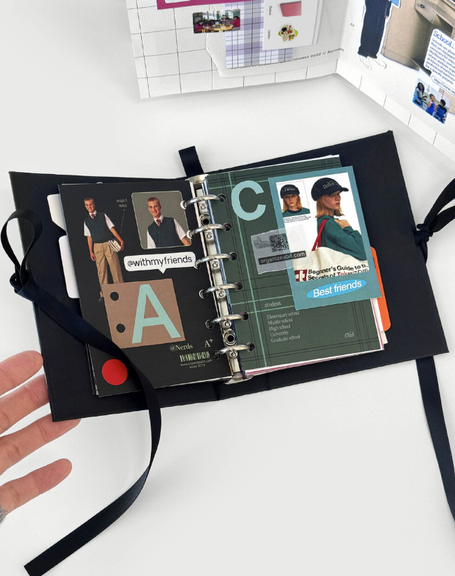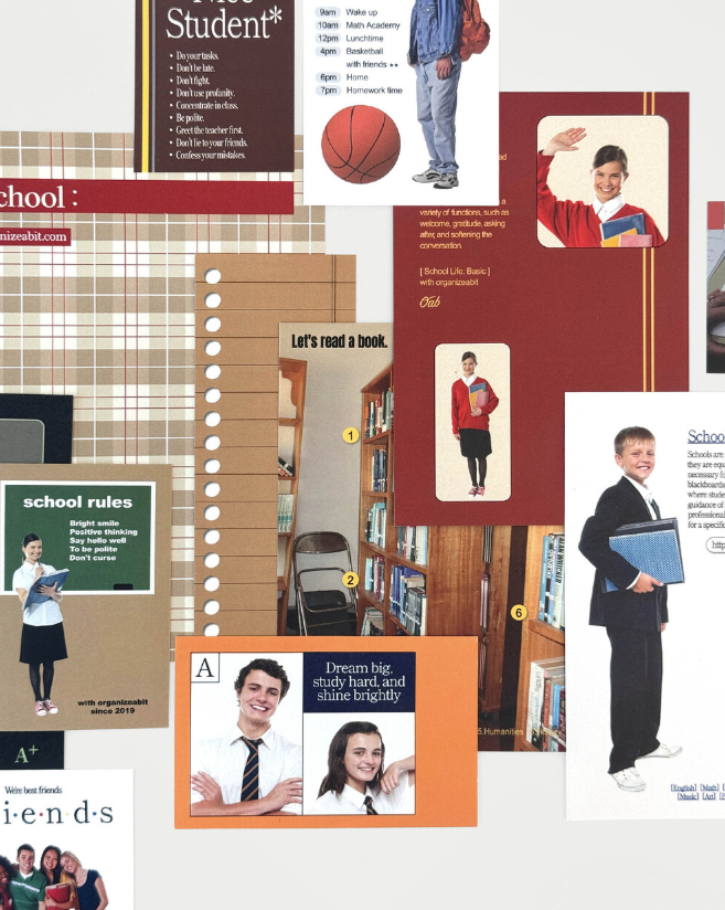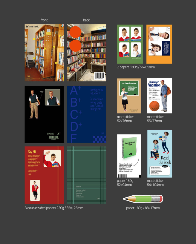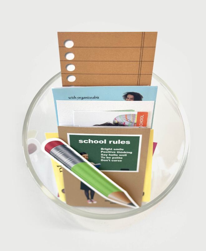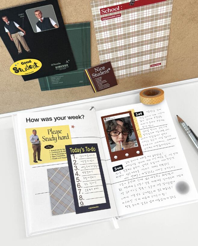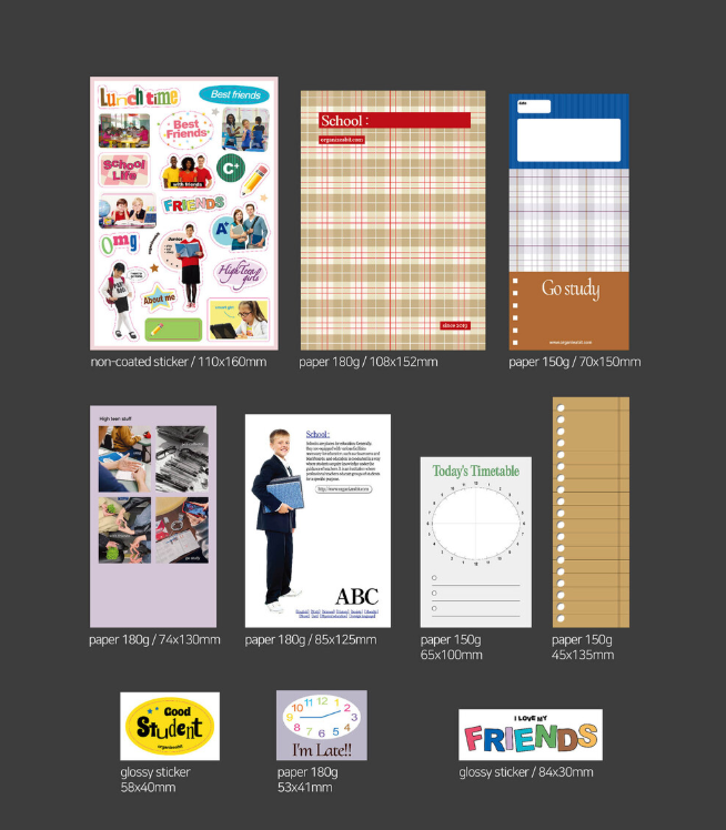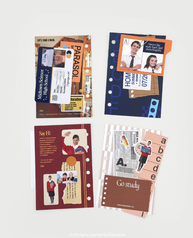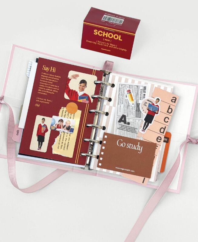 ノートや手帳、カード、ダイアリーのページを、学校や学びのモチーフで自由に飾れるスクラップパックです。