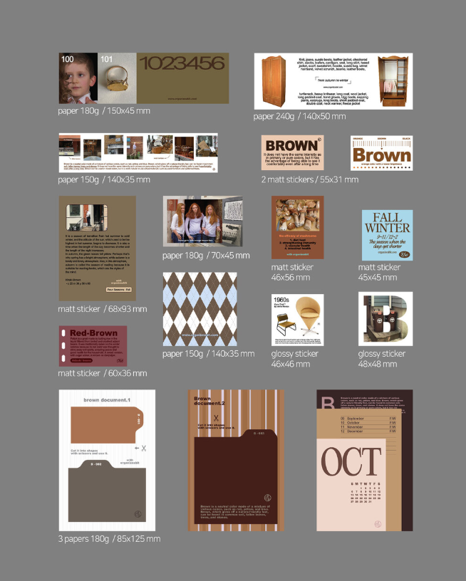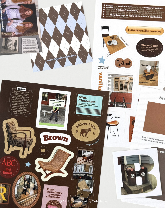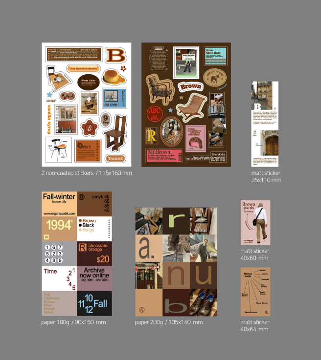 「tone pack brown」は、ブラウンをテーマにしたステッカー&紙デコ素材のセット(デコレーションパック)です。