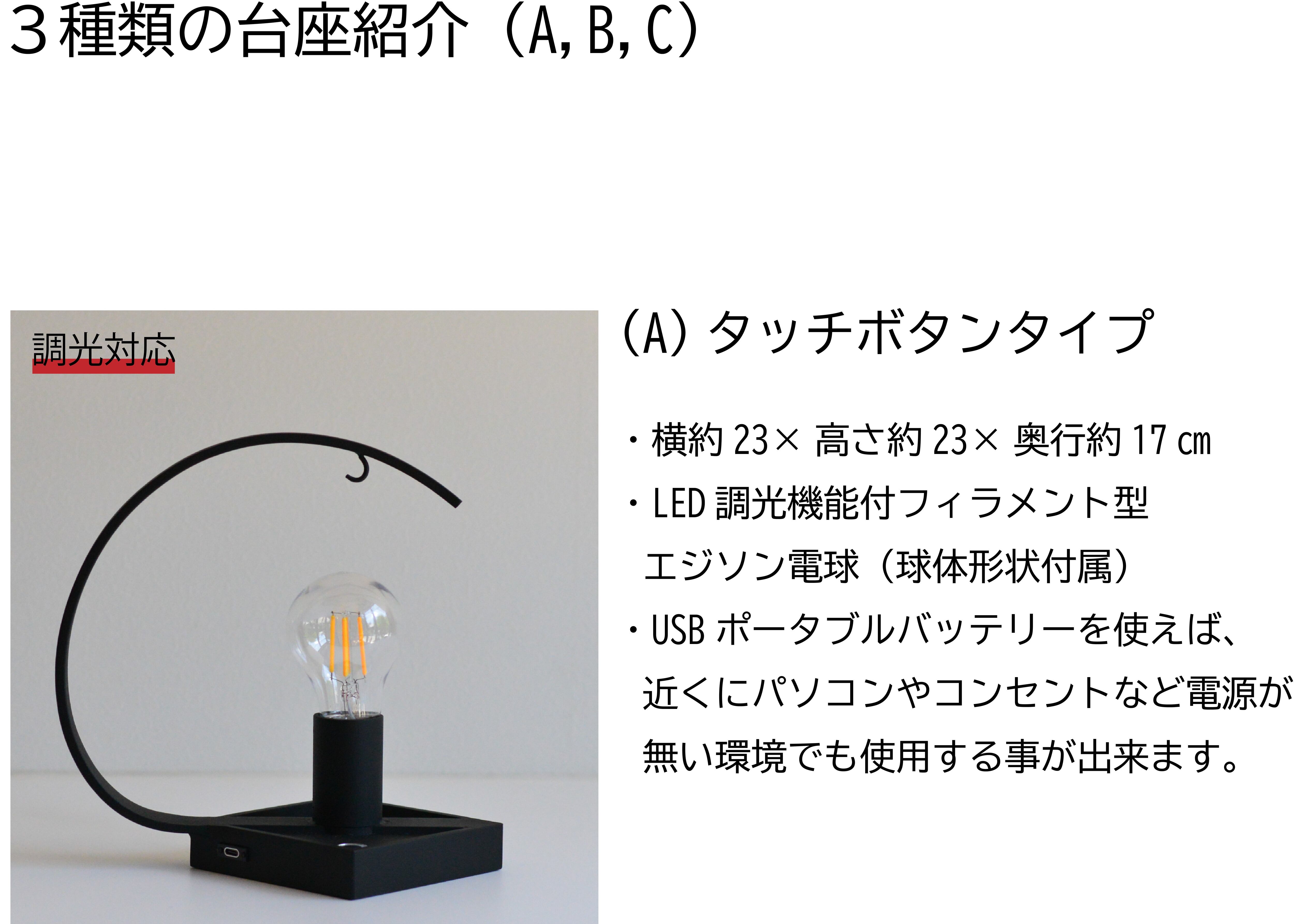 A)USBタッチボタンタイプ LED調光機能付フィラメント型